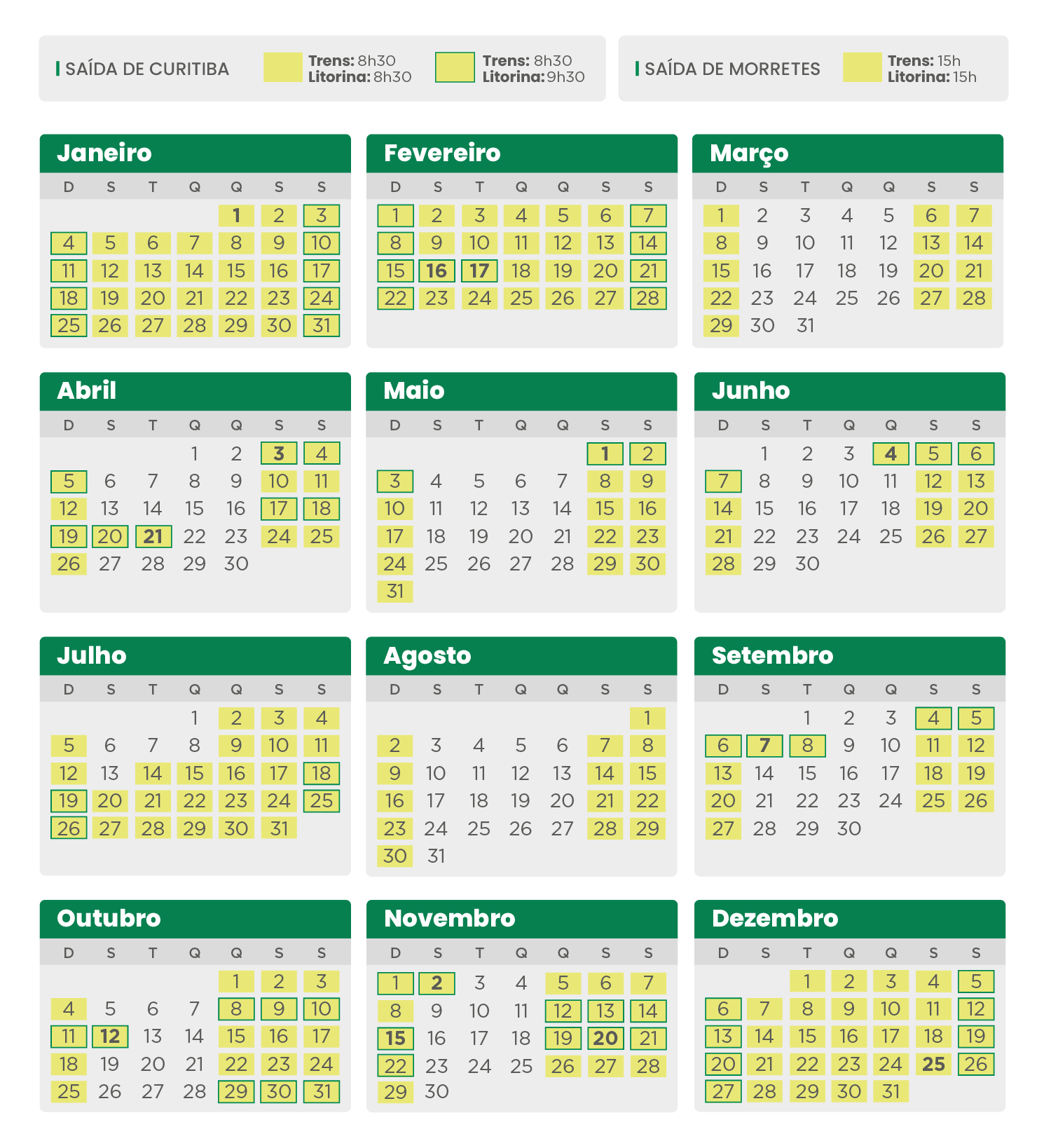 Atenção: de 1º de janeiro a 1º de março de 2026, as saídas de Morretes acontecem às 16h.