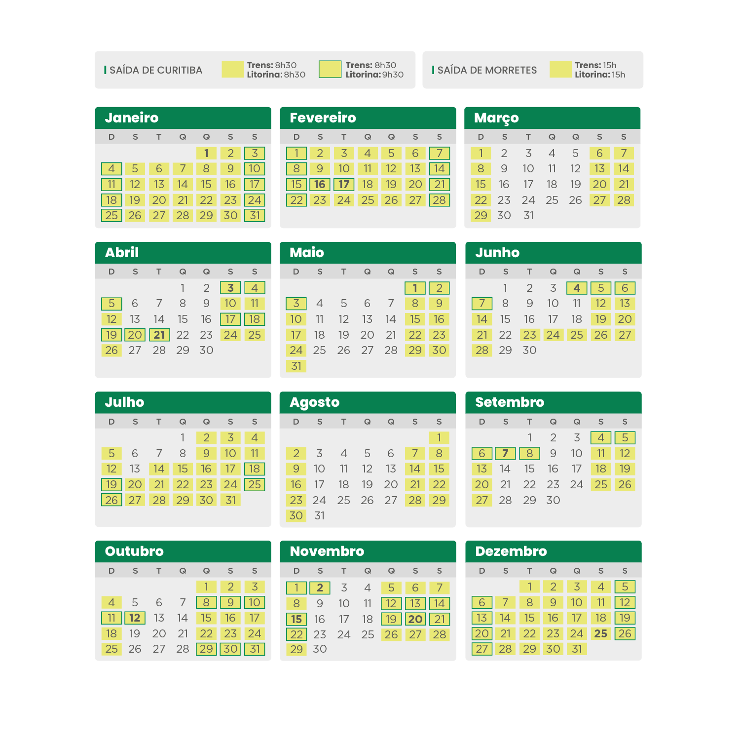 Atenção: de 1º de janeiro a 1º de março de 2026, as saídas de Morretes acontecem às 16h.